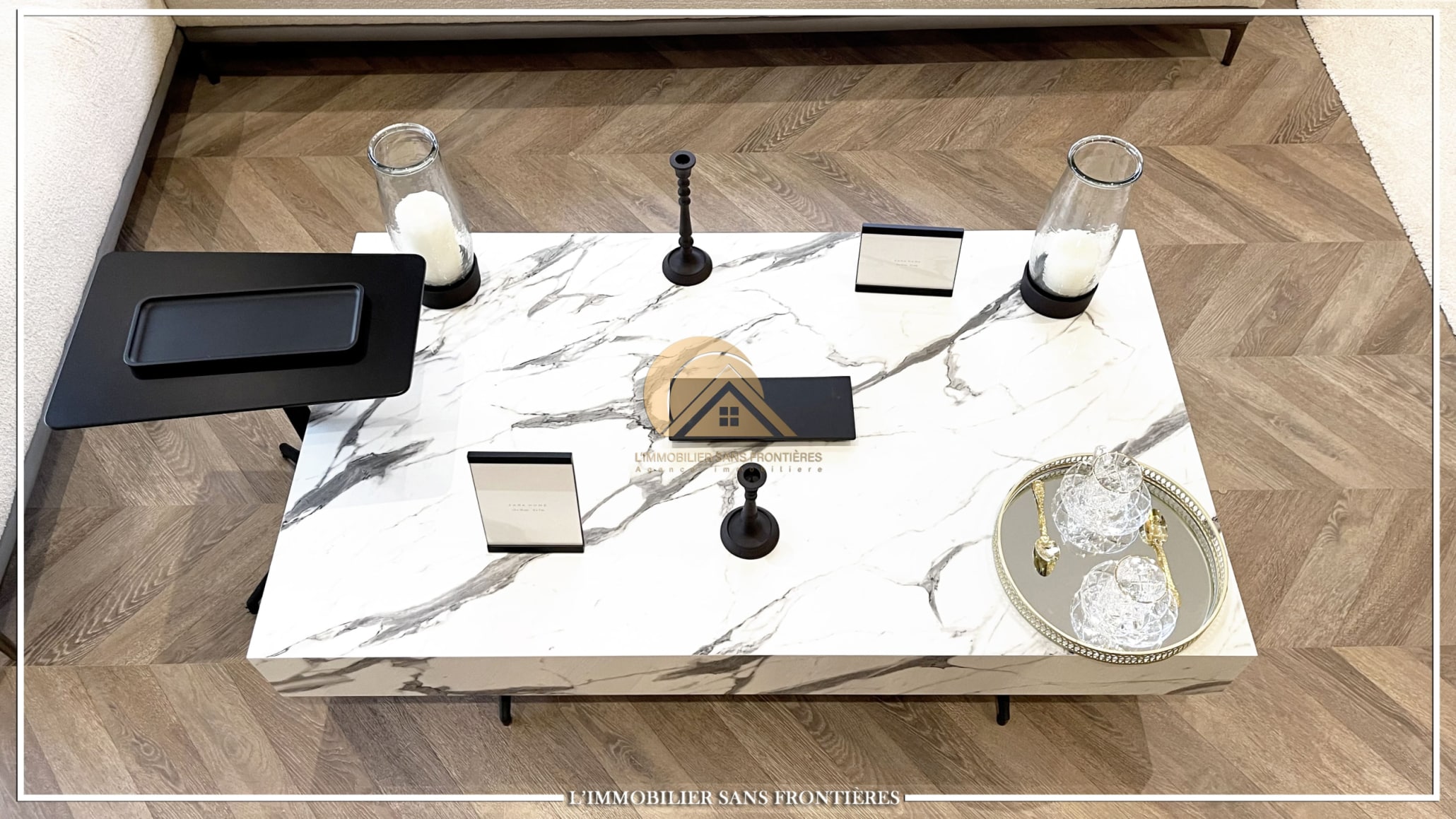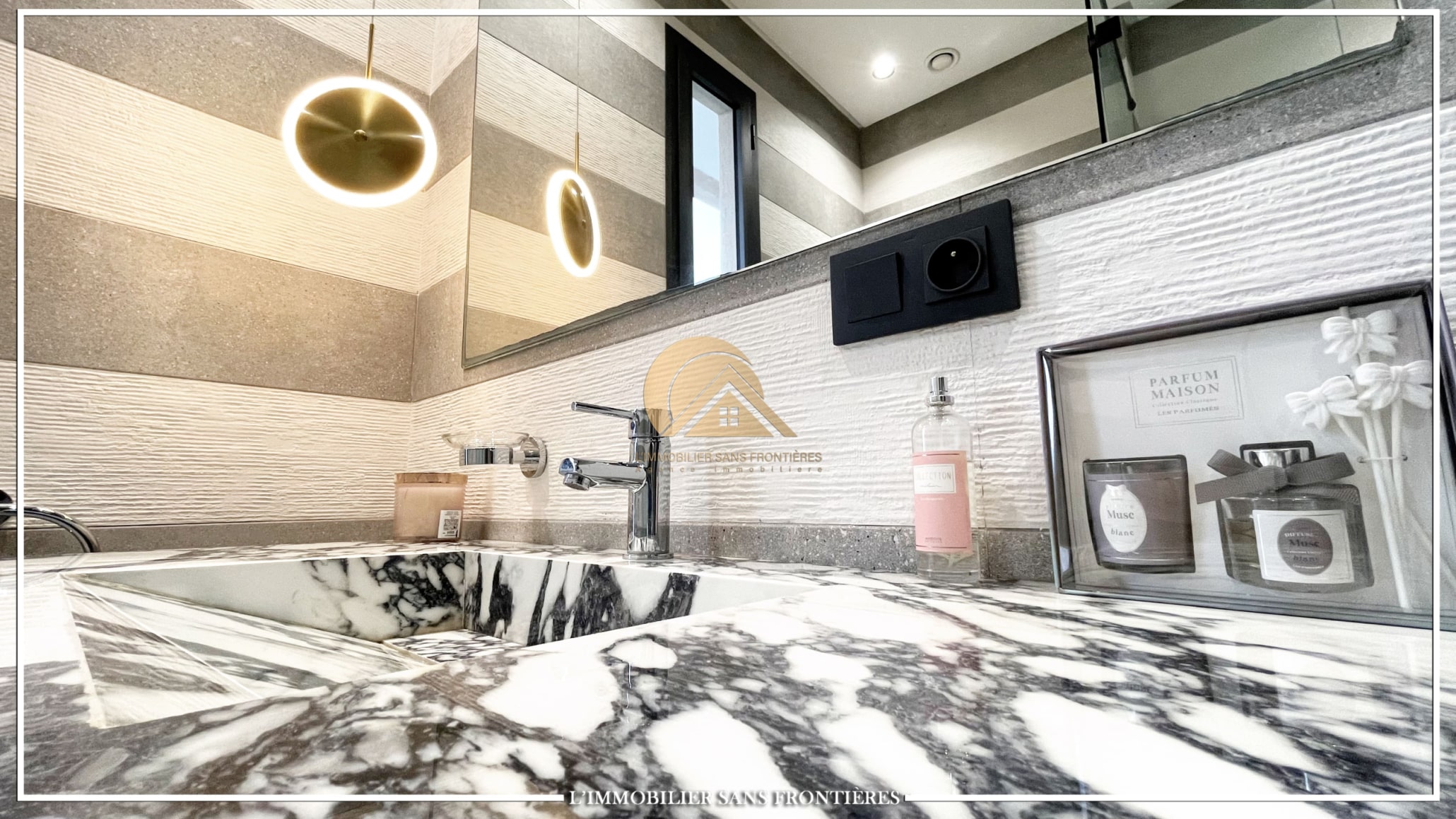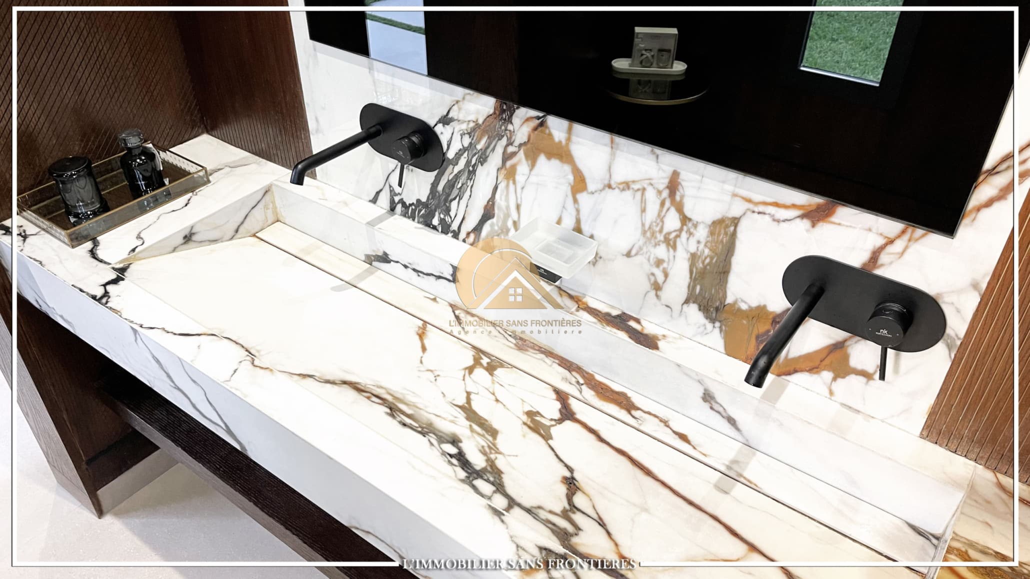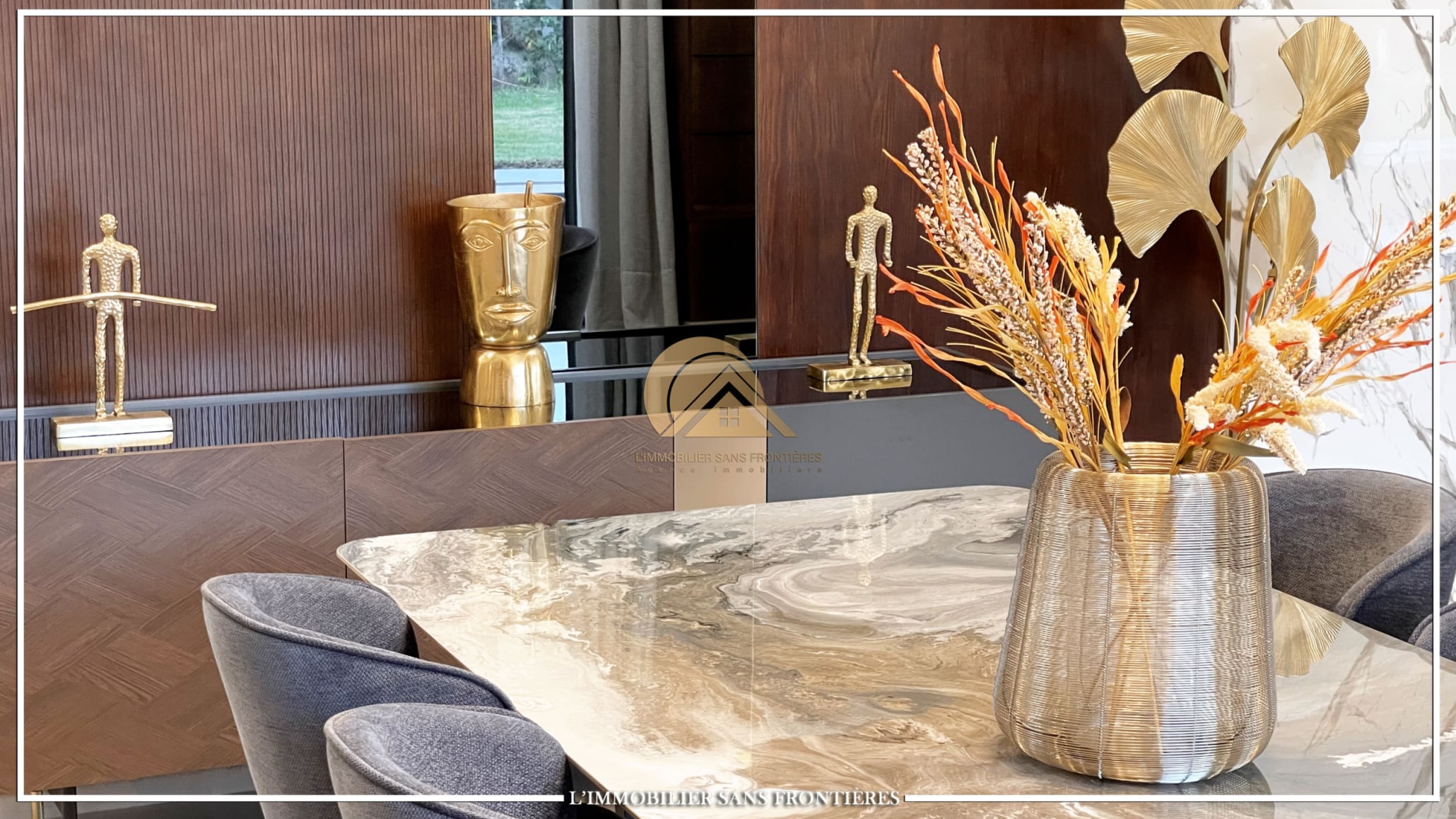 Stated finishes: marble and MDF wood – Fireplace – Equipped kitchen – Terraces – Pool views