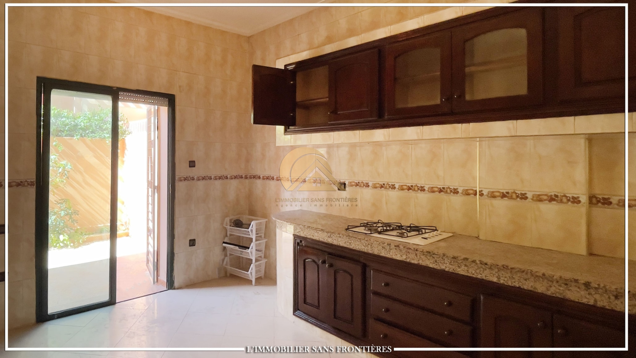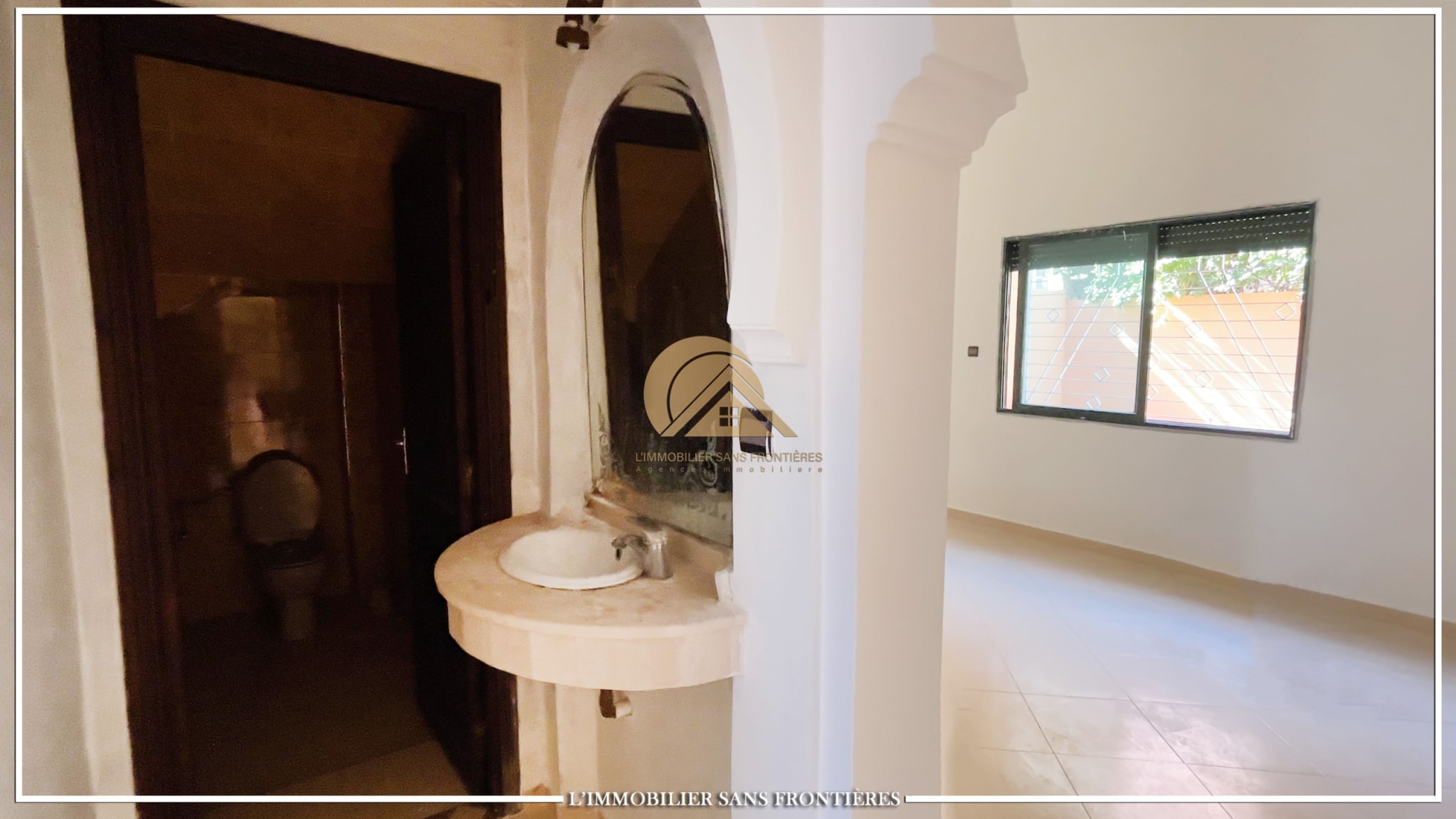 Real Estate Without Borders offers this unfurnished villa for rent in Targa, Marrakech, stated in a secured setting and a sought-after area. A private garden and a 250 m² size are stated. The layout is organized across ground floor, first floor and terrace.